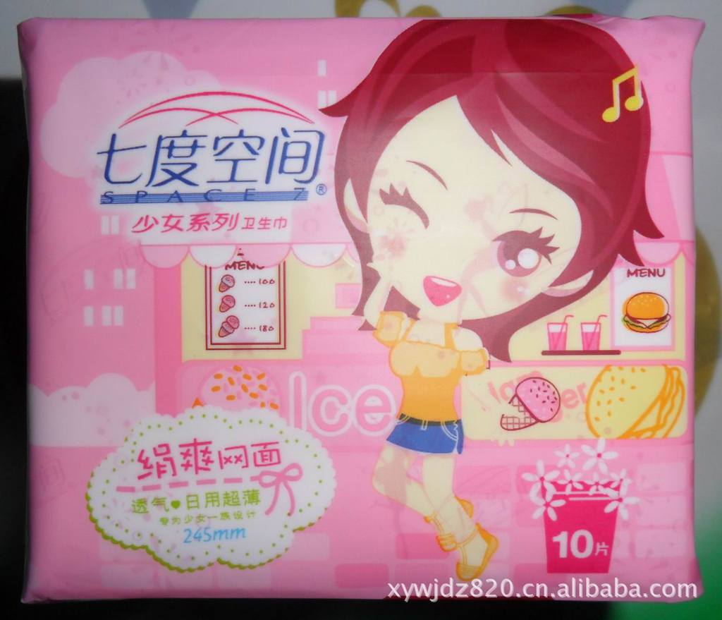 七度空間衛生巾批發QSC7205娟爽網面超薄夜用5片,48包*5片