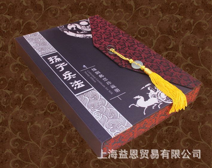 《孫子兵法》是中國古代偉大的一部兵書。然而,在漫長的歷史演變中,孫臏所作的兵法佚失了,甚至連孫子是否真有其人也受到后人的懷疑。一九七二年,在山東臨沂銀雀山漢墓出土了近五千枚漢簡,其中部分殘簡與傳世的《孫子兵法》十三篇內容一致,被考定為《吳孫子》上篇,另有五篇殘簡被認定是《吳孫子》的下篇;還有四百多枚殘簡,根據內容考證為《齊孫子》,分為上下兩篇。兩書同墓出土,證實了兩種孫子兵法曾行于世。 《孫子兵法絲綢郵票珍藏冊》采用絲綢為材料,加以《孫子兵法》系列郵票大全套栩栩如生的畫面,仿古書籍精裝本裝幀,再現我國傳統文化的風貌和濃郁的東方絲綢文化特色。有較高的藝術欣賞價值和收藏價值。