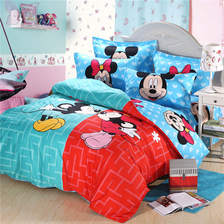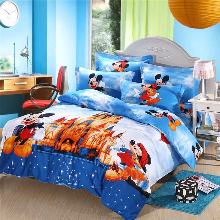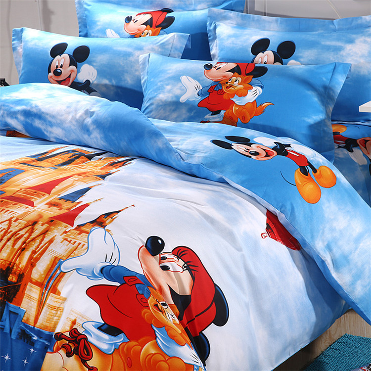 全棉活性卡通套件--米奇樂園 親親米奇 面料100%活性全棉,被套有被角帶,全鎖邊,不縮水不褪色,洗后更亮麗