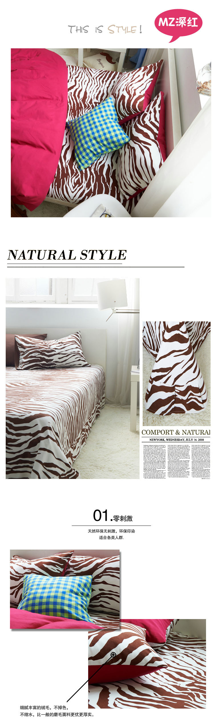 MZ咖啡色斑馬紋21支全棉磨毛四件套