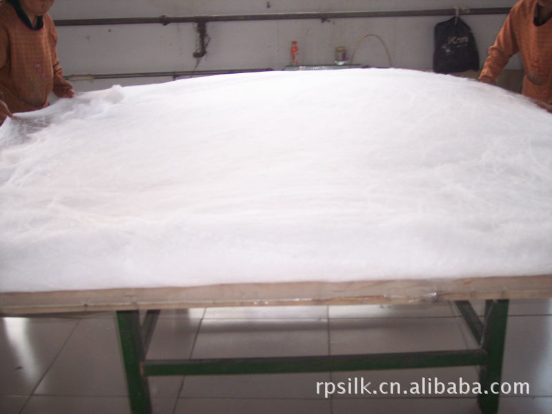 蠶絲被由絲綢或全棉面料作內被套,而被芯由精心選擇出來的合格蠶繭手工拉制,可以不用一針一線就保持內胎的形狀,100%桑蠶絲被。