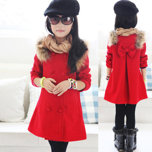 童裝2014秋冬新款兒童中大童韓版毛呢加厚雙排扣童外套 童裝批發RMB71.00