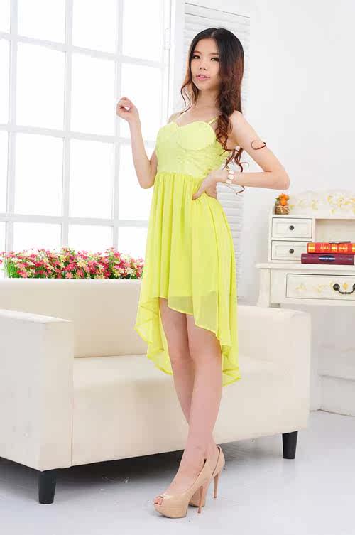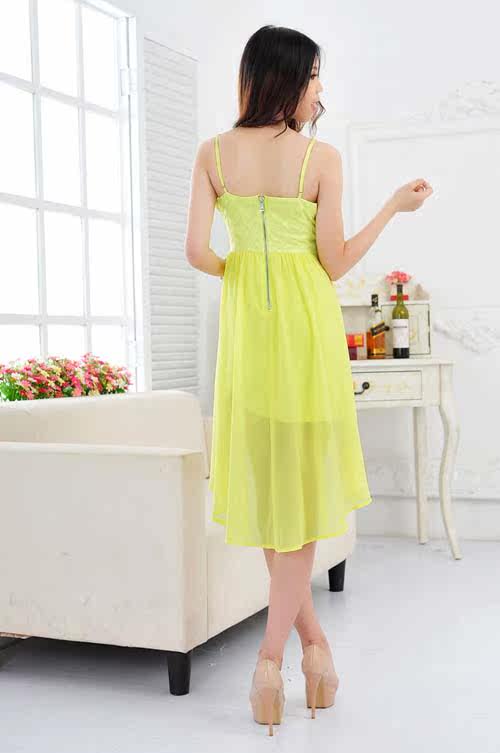 美國FOREVER21 精致刺繡帶軟文胸小拖尾吊帶連衣裙3046