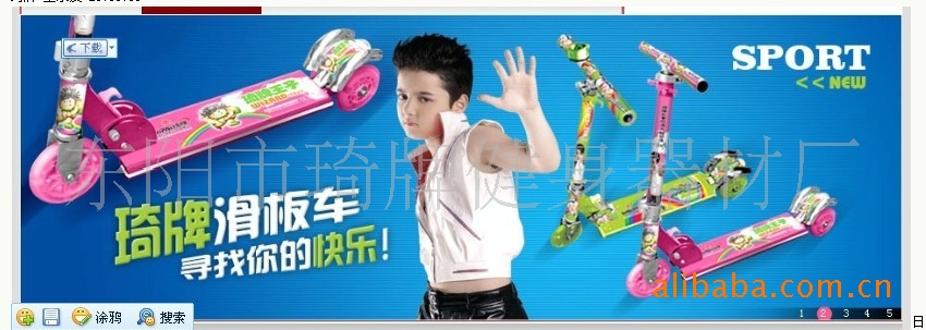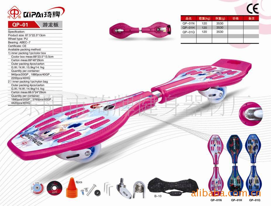 浙江省東陽市琦牌健身器材廠是一家專業生產活力板、滑板車、QQ旋、跳跳球、螳螂車、活力車等系列健身用品的龍頭企業之一。并且是央視廣告品牌,同行業中一家請明星代言的工廠,公司占地面積1萬多平方米,開發技術人員20人,生產員工300余人,活力板日產5000臺,年產值5000多萬元。