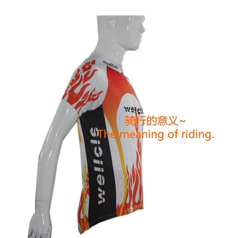 3、衣服面料為100%滌綸 吸濕排汗 .褲子錦綸 萊卡面料配加厚硅膠護墊2.3CM