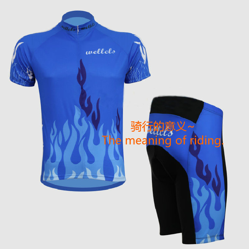 Wellcls 男款藍色火焰 山地騎行服 公路自行車騎行套裝 衣服 褲子