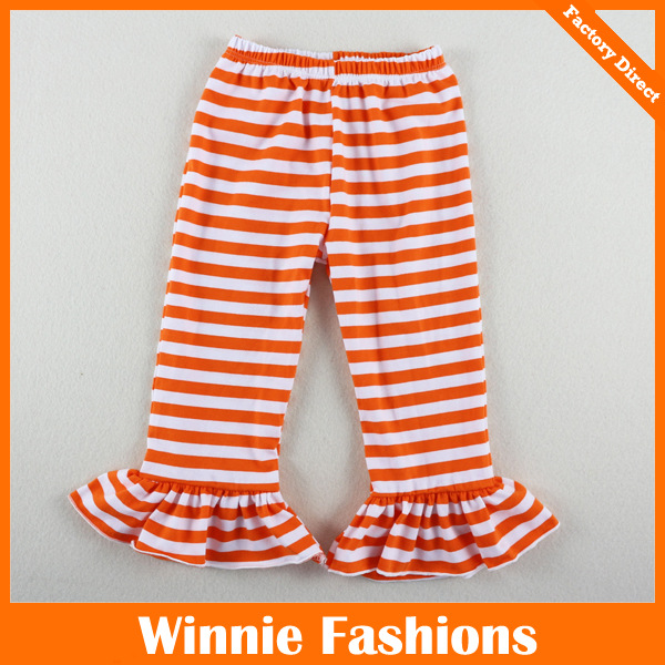 歐美外貿廠家冬款全棉條紋長褲 批發女童純棉荷葉花邊條紋褲子