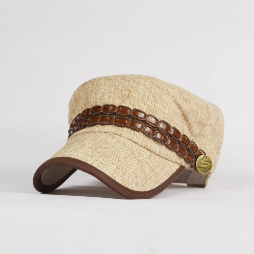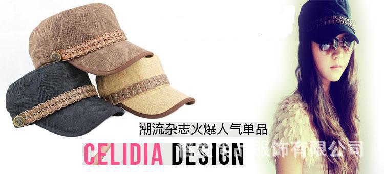 新店開張 全場第二檔價格 夏皮革帶平頂帽 軍帽 帽子 批發