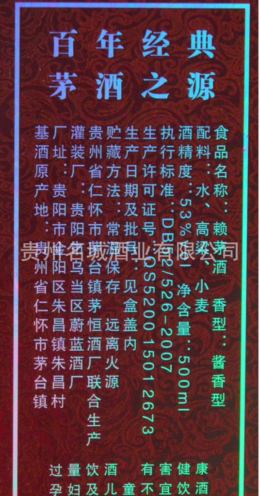 生產廠家:貴州省仁懷市茅臺鎮茅恒酒廠
