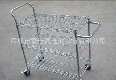 鍍鉻架材料有碳鋼鍍鉻、不銹鋼兩種。有防塵放電的鍍鉻架主要產品有:置物架、防靜電貨架、手推車、保全車、圍網車、STM物料存放車、PCB周轉車,流動貨架等系列,和各服裝展示架、和種展架、材料有線材、管材、板材、不銹鋼和碳鋼兩種,不銹鋼表面處理為鍍鉻;工業型每層載重250KG,并且可配置防靜電工業輪子,具有防塵防電、容易組裝、承重安全、美觀耐用、省力易推等特點;平板工作臺、孔板工作臺、工作桌、文件柜、鞋柜、工具柜、及各種板材制作的產品,美觀耐用,板材有不銹鋼、冷扎鋼兩種。