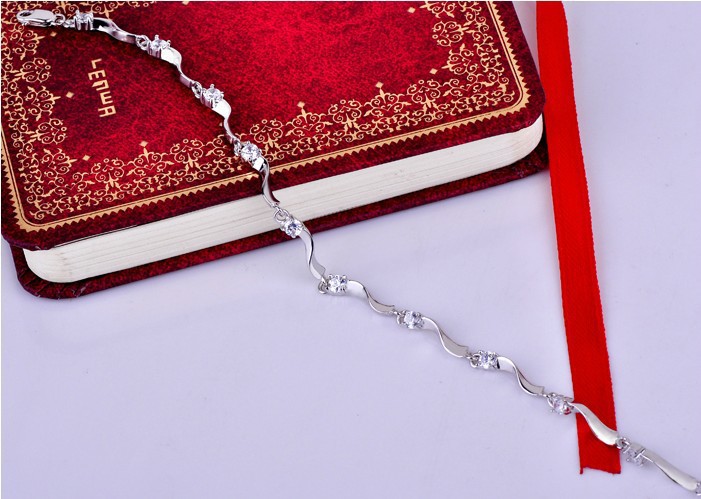 銀飾廠家直銷 925純銀手鏈 韓版女士時尚鑲寶石手鏈批發 生日禮物