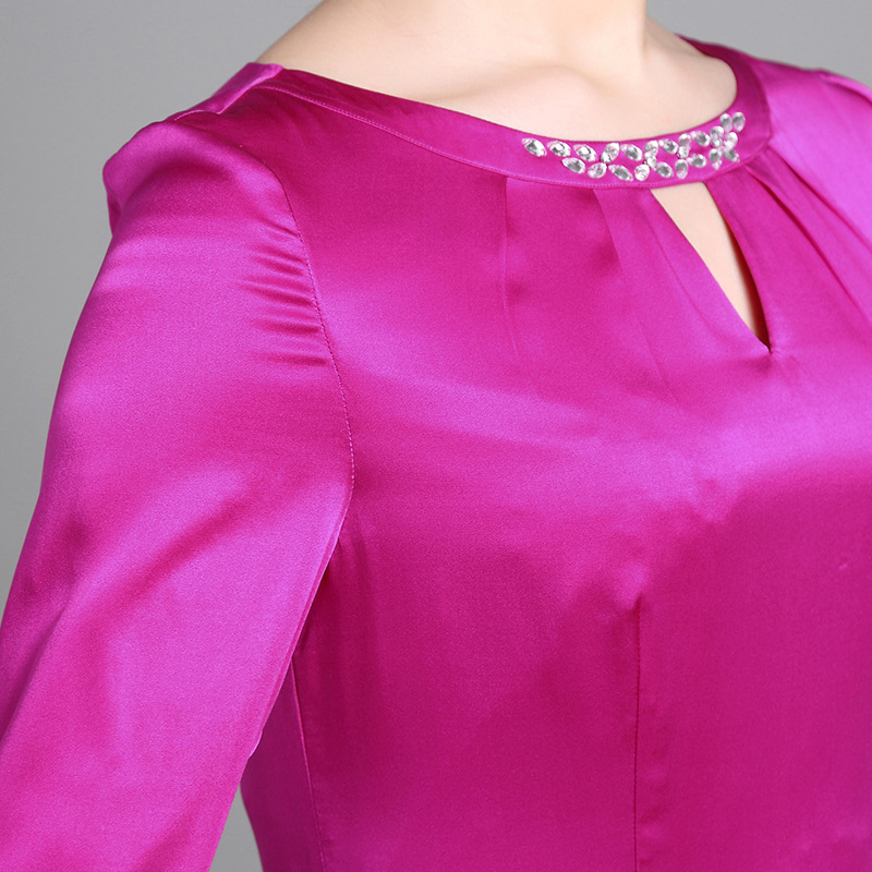埃倫2015春裝連衣裙歐美修身a字裙純色時尚氣質顯瘦 真絲連衣裙