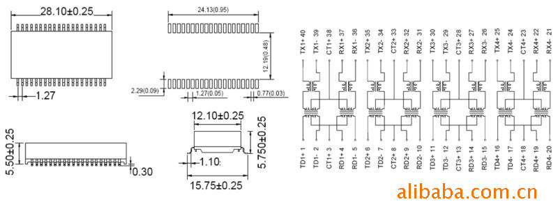 1.Turns Ratio: @100KHZ/1V TX 1CT:1CT,RX 1CT:1CT ±3%