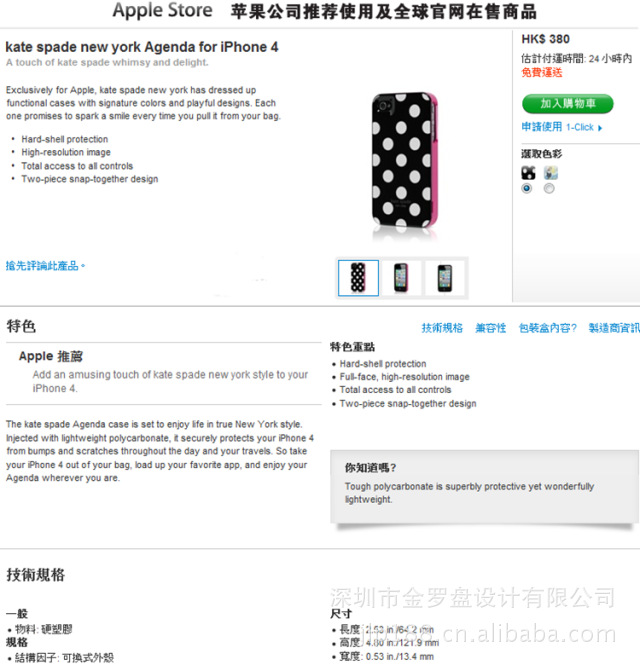 紐約時尚品牌Kate Spade專為蘋果IPONE4設計的手機套