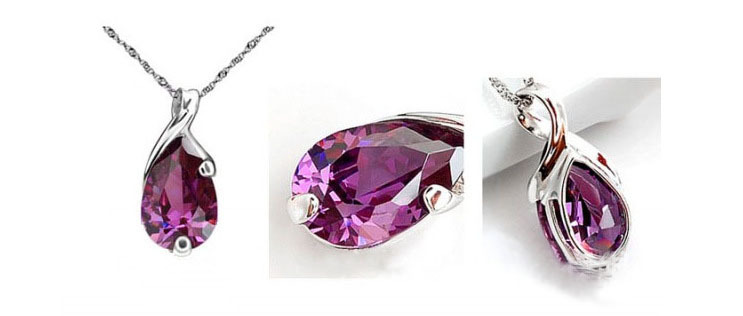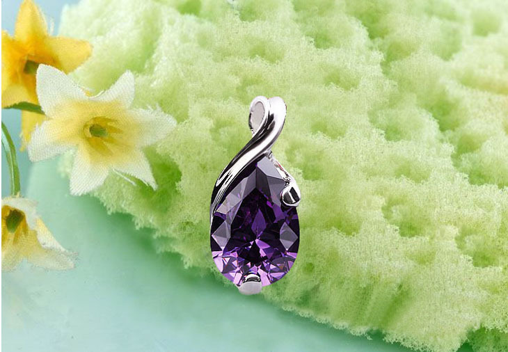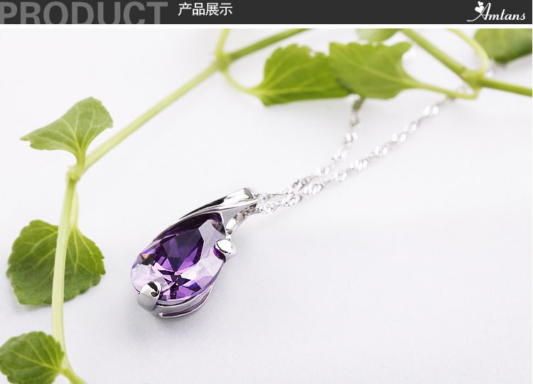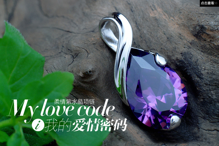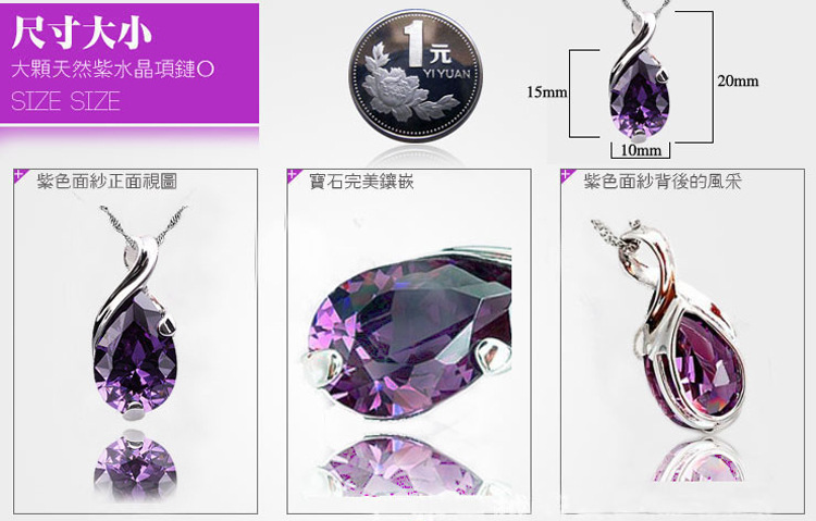 淘寶專賣批發 925純銀女款天使淚紫水晶吊墜 鍍白金項鏈 天使之淚