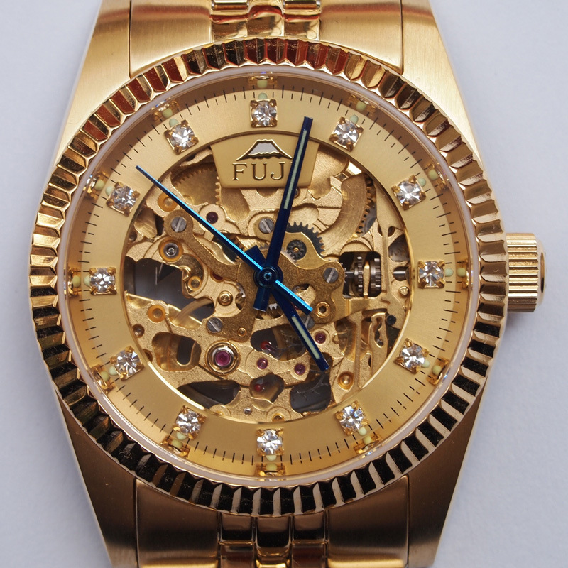 正品富士品牌全自動機械鏤空創意藍寶石鏡面商務男士手表批發零售