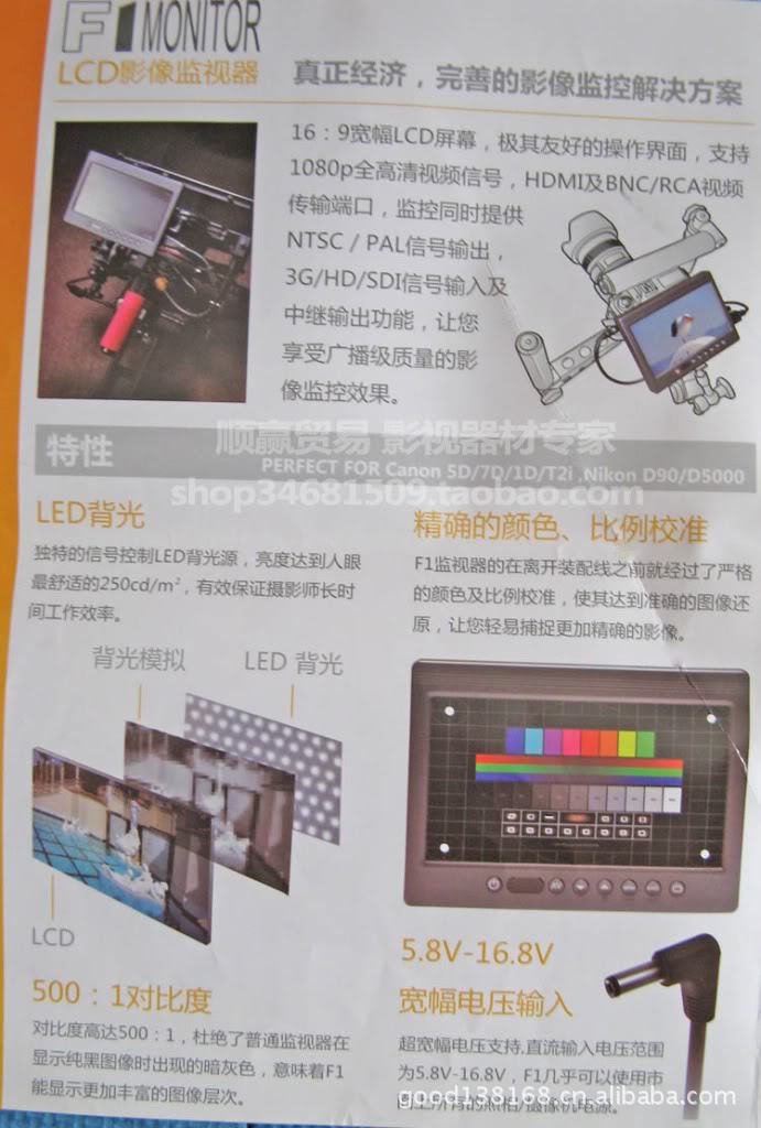 免郵!富萊仕F1 Ⅱ代 7寸高清LED監視器HDMI SDI 高清監視器