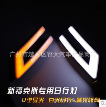 福特新??怂箤S萌招袩?LED專車專用日行燈 豎款帶牙雙色光導U型