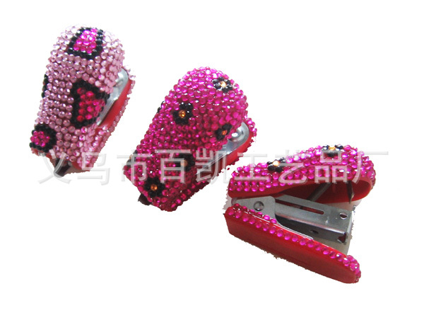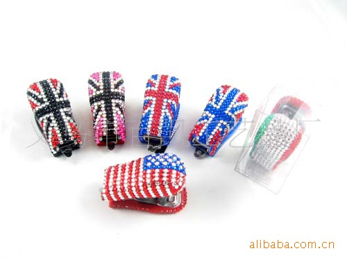國旗迷你訂書機 貼鉆漸變色訂書機 鑲鉆辦公用品