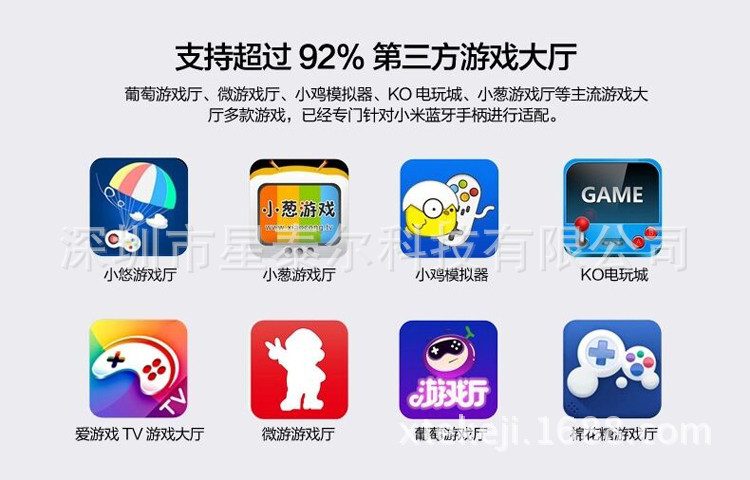支持:手機、平板電腦、TV電視、藍牙遙控游戲手柄 兼容:安卓Android、蘋果ISO系統