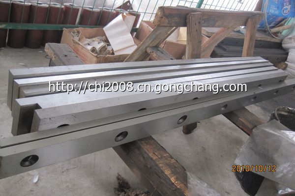 剪板機的刀片材質一般有T10、9CrSI、6CrW2Si、Cr12MoV 、H13,合金鋼等幾種材質。