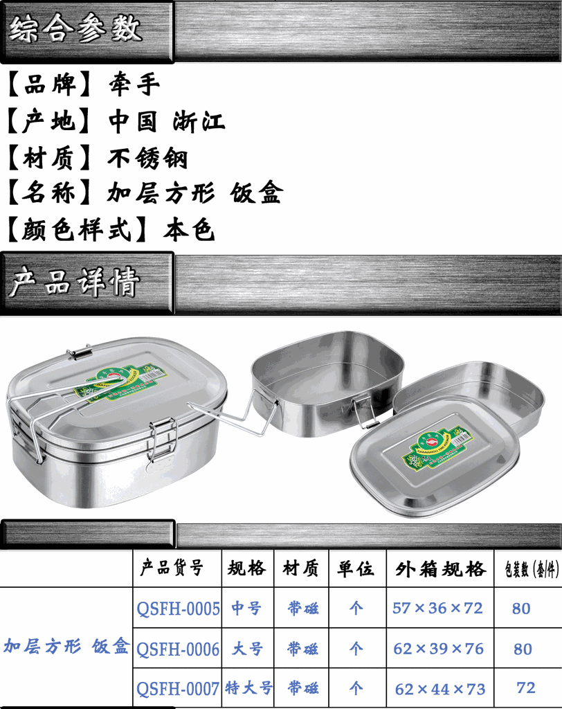 不銹鋼飯盒 不銹鋼方形飯盒 雙層飯盒 廠家批發牽手加層飯盒