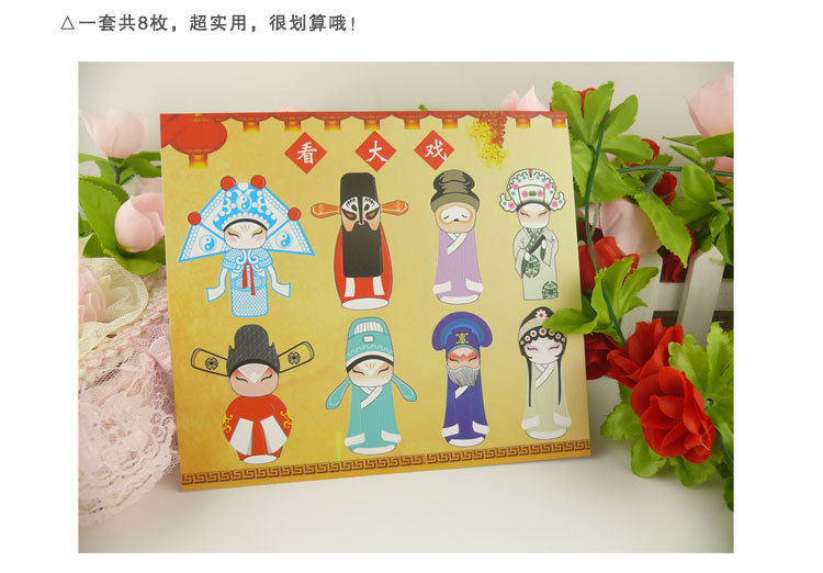 特價批發 創意中國古典風臉譜書簽 京劇大戲迷你便攜書簽 8枚入
