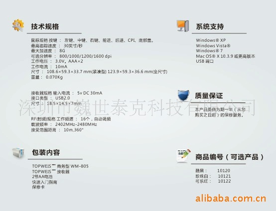 冠巍WM-805無線鼠標規格參數