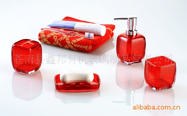 亞克力衛浴四件套系列材料采用透光性極強的壓克力(俗稱有機玻璃,英文縮寫:PMMA),通過進口注塑機注塑而成,外表光滑,光澤瑩潤,外觀新穎。質優、別致和實用的特點,瞬間將您乏味、單調的衛生間變成時尚的。產品暢銷國內并遠銷歐美、東南亞。 歡迎新老客戶垂詢!