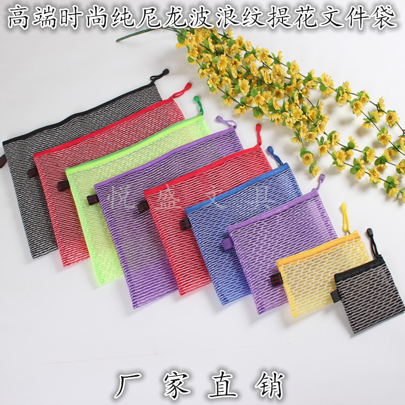 悅盛廠家直銷純尼龍波浪花紋提花拉鏈文件袋 a4拉邊檔案袋 可定制