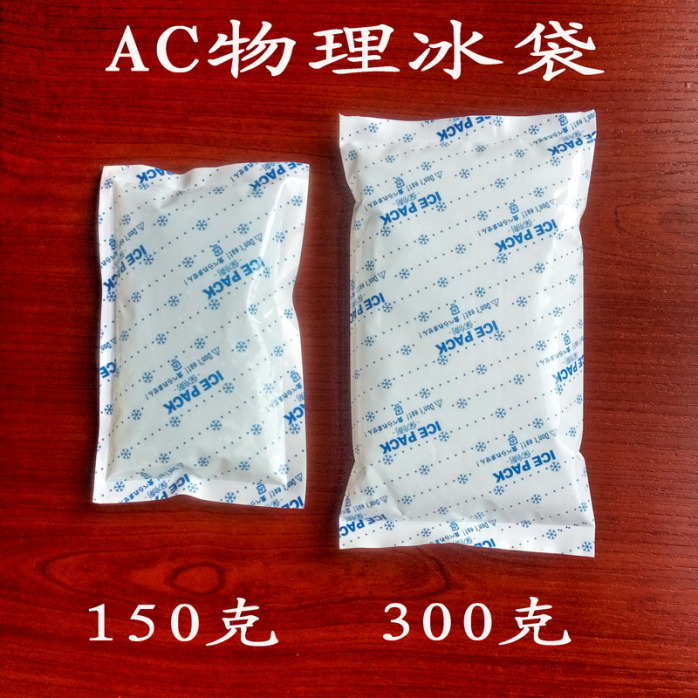 AC保冷劑-冰袋是以高分子聚合物-(簡稱AC料)吸水膨料為基料的一種物理保冷劑。其本身不能制冷。須放入零下10-20攝氏度的冷庫或冰柜、冰箱內冷凍24小時以上才能儲冷成堅硬的冰塊。其特點是:儲冷足、降溫快、釋冷慢。經測定每100gAC冰袋,冷容量約為12千卡。在密封性能好的容器內,保持10攝氏度48到50小時左右,如需保持溫度更低,時間更長,可適當增加冰塊數量來調節。