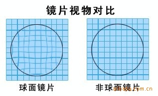 傳統的球面鏡片,鏡片周邊看物體有扭曲的現象,限制了配戴者的視野,在科技不斷進步的時代,非球面設計這一光學奇跡,將鏡片邊緣像差減到底,使它寬闊視野可以滿足顧客的需求。非球面鏡片的表面弧度是非球面設計的,這種設計比起球面設計鏡片的優點是: