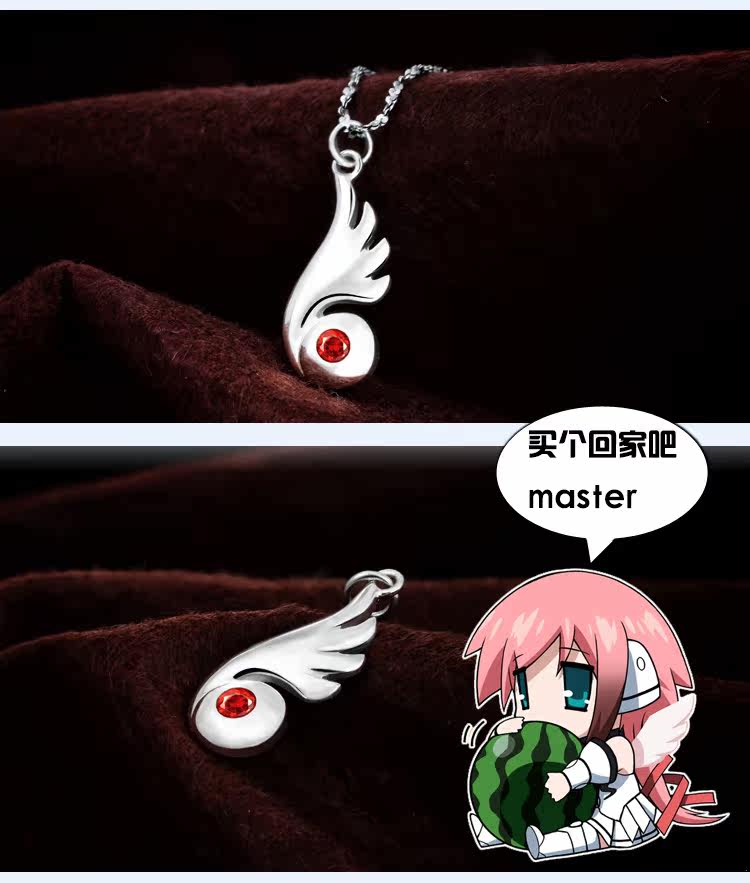 名稱卡通動漫周邊 伊卡洛斯項鏈 天降之物標志項鏈 925純銀重量小號 約1.1克;中號約2.4克材質925純銀鍍白金鑲紅鋯石(帶有925純銀防偽標志)尺寸大小