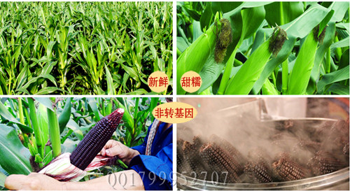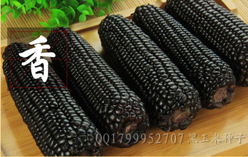 黑糯一號玉米:該品種F1代種子為淺黃,株高260厘米左右,穗長19--22厘米,穗粗5.0厘米,穗行數16-18行,穗粒數501粒,禿頂1.0厘米,商品果穗率83.5%,全株葉片數20片左右,葉色深綠,花絲白色,花藥黃。果穗筒形,鮮穗采收期平均78天,鮮穗籽粒、穗軸均為紫黑,子粒紫色,果皮較薄,風味品質好,是目前黑糯玉米口感好的品種。株型半緊湊,莖桿堅韌,抗病抗倒,中抗大葉斑病、小葉斑病,高抗玉米黑粉病、矮花葉病,高感青枯病,感彎孢菌葉斑病。適宜我國南北方種植,可在早春覆膜早播和晚夏播連作兩茬, 采收鮮穗在授粉后24天為宜。