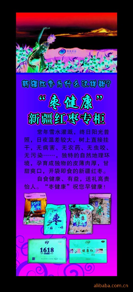 (1)貨源足:多年經營,依托內地六大主產區多個廠家長期源源不絕的供貨,不敢說能帶來暴利,但一定能走得長遠.(2)品種多:以近年走俏的新疆紅棗為主,有十多個品種,其它產區也有數十種阿膠棗,金絲小棗,大紅棗,金絲蜜棗等.全是優美精包裝,適合開專店,設專柜,擺網上.(3)價格平:價格每包1元多起,優質,高檔,精裝新疆紅棗,每包500克也是20-30元,完全可以融入社會,走進家庭.(4)零風險:所有產品全是廠家直接供貨,都是包裝產品,萬一有質量問題,也完全可以追溯.我們也鄭重承諾:如有質量問題,保質期內包退包換;如非質量問題,購貨后兩個月內可退可換.對新商品新客戶,我們再送一程:送上5%的樣品.