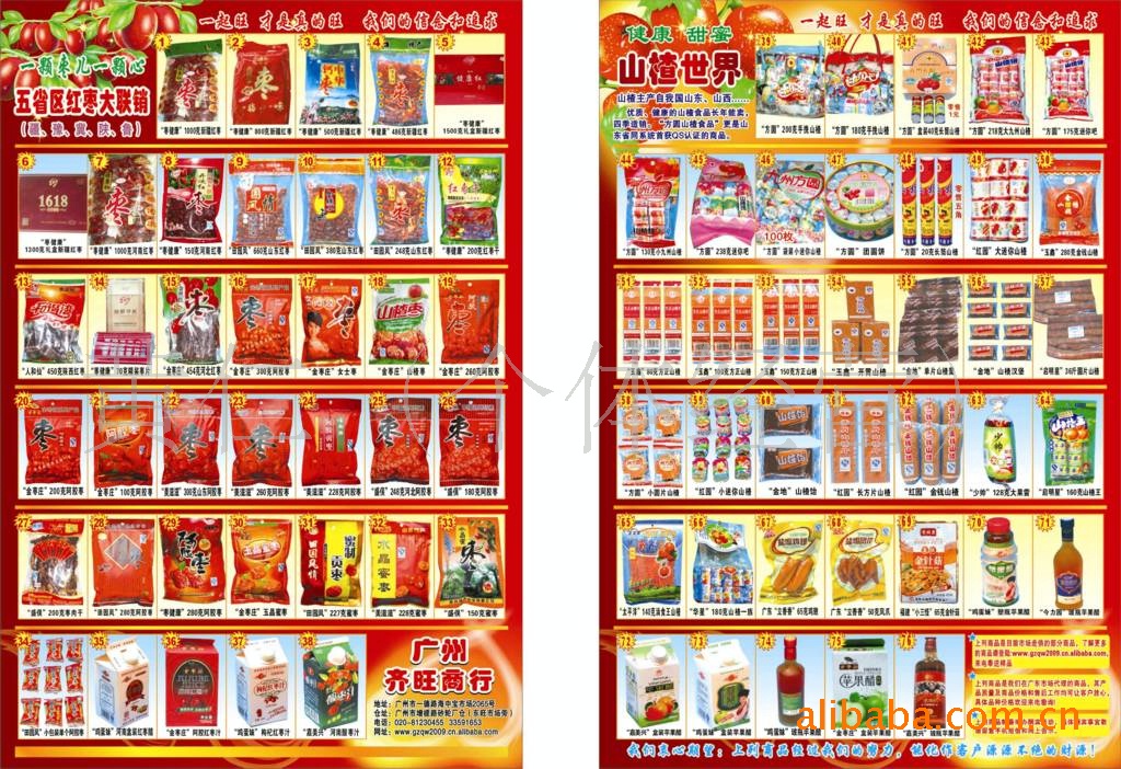 ,.依托內地名優食品廠家,主營富有特色,包裝精美,經深加工的內地農副產品(紅棗制品,山楂制品,餐桌食品,休閑食品等).服務南方粵,湘,閩,贛,瓊,桂等省區數百家超市商場及流通客戶和海外僑商.我們在廣大新老客戶患難相扶中白手創業,我們深深認準一個道理:只有和客戶一齊旺,才是真的旺.我們是數十個食品廠家在廣東市場的一級代理商,所經營的商品基本從廠家直接進貨,在產品質量和商品價格及售后服務上都可讓客戶放心.具體品種價格歡迎垂詢商議.交易方式:(1}在商鋪直接驗貨交易;(2)代辦發貨.