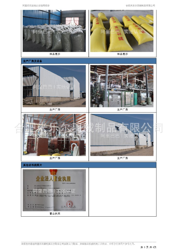 合肥米樂爾羽絨制品有限公司創始于1988年,坐落于合肥新站開發區,緊鄰G40滬陜高速,地理位置優越,公司秉承“以市場為導向,以質量求生存”的經營理 念抓住機遇大膽開拓,不斷創新,始終把質量、服務放首位。公司擁有先進的水洗、分毛設備各4套,拼堆機一套,產品質量的穩定性得到客戶一致認可;主營產品 有白鴨絨、吊吊絨、灰鴨絨、白鵝絨等日標、美標多種規格。銷售網絡遍布全國,產品出口日本、歐美的多個國家,年營業額達2億。