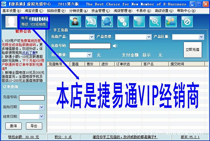 捷易通充值軟件操作界面(2011版):