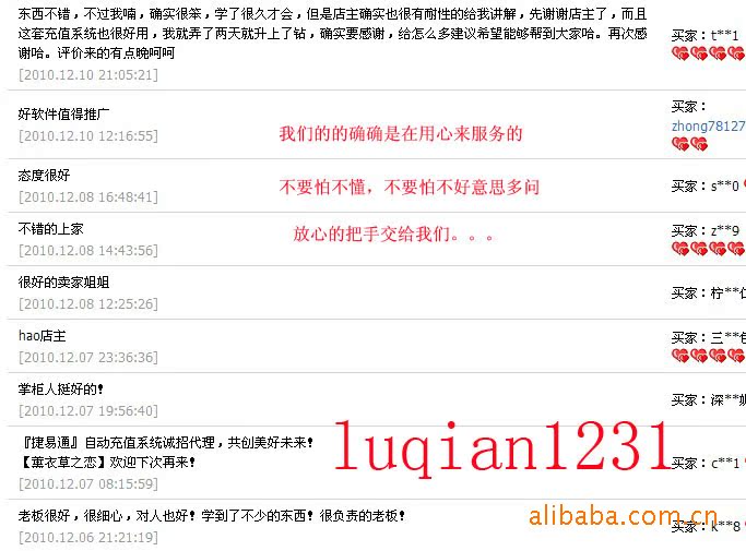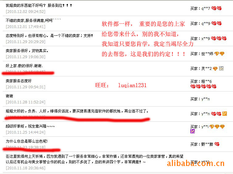 我的服務怎么樣,我說了也不算,自己吹得再好,那也是黃婆賣瓜,自賣自夸。只有我尊敬的下家有發言權。還是讓他們來發表評論才真實可信吧?。?!