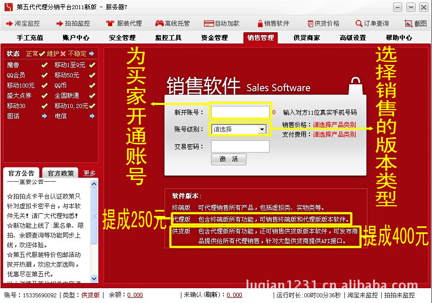 8.招下級返點高:只要你在我們這里購買軟件,即可發展下級代理商,捷易通可以拿到230元的返點/第五代可以拿到250元的的返點!一次性收取終身使用,無需其他任何費用。
