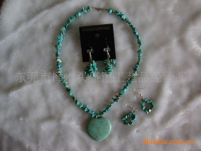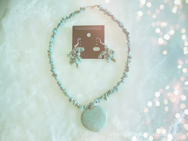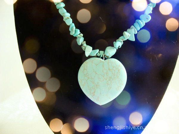 盛記寶石 008#時尚心形吊墜項鏈 人造石項鏈 心形仿松石 項鏈