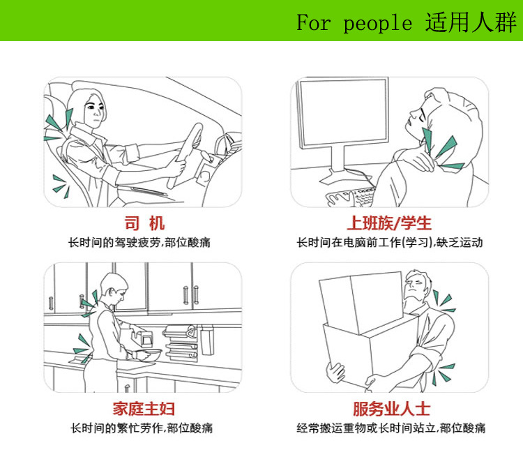 按[mo]器對人體腰、背、肩部位的經絡、穴位、肌肉、體表做勻稱的揉捏按[mo]。另外,按[mo]墊能促進對人體的血液循環,改善新陳代謝,消除肌肉酸痛,調節自律神經。四季皆可使用(夏季可以關閉加熱功能)。