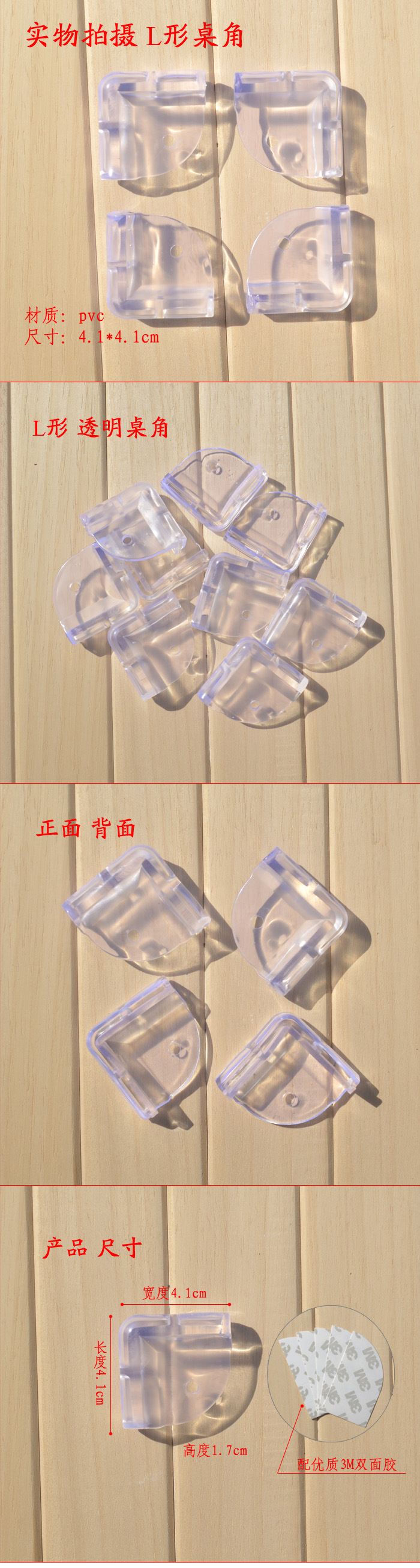 選用富有彈性的PVC精制而成,安全又美觀,即讓寶寶和您的家人免受碰撞之苦,同時又不妨礙家具整體造型。本品適用于一般家庭中的桌角、床角、書柜、樓梯角等位置。