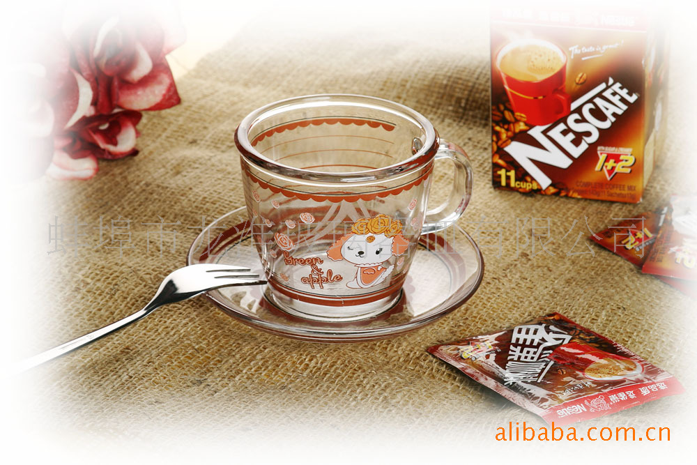 【廠家直銷】韓式咖啡玻璃杯,經典咖啡杯,貼花玻璃杯