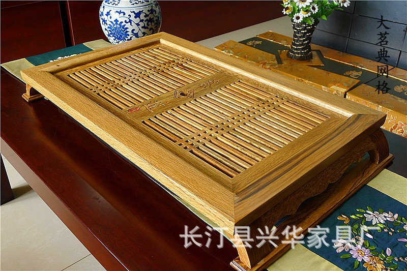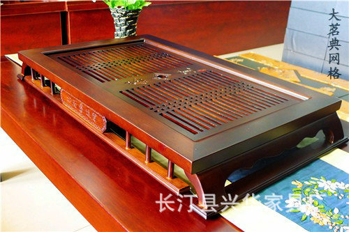 大茗典茶盤設計引用漢代家具風格,簡約大氣,典雅脫俗。茶盤木質采用的是有“國內黑檀”之稱的鐵梨木,木質堅硬,穩固如石,木紋又有雞翅木般條理,再加上木匠師的精工細琢,一件上等品茶之器,孕育而生! 品好茶,用好器! 歡迎各位經銷商來電訂購;