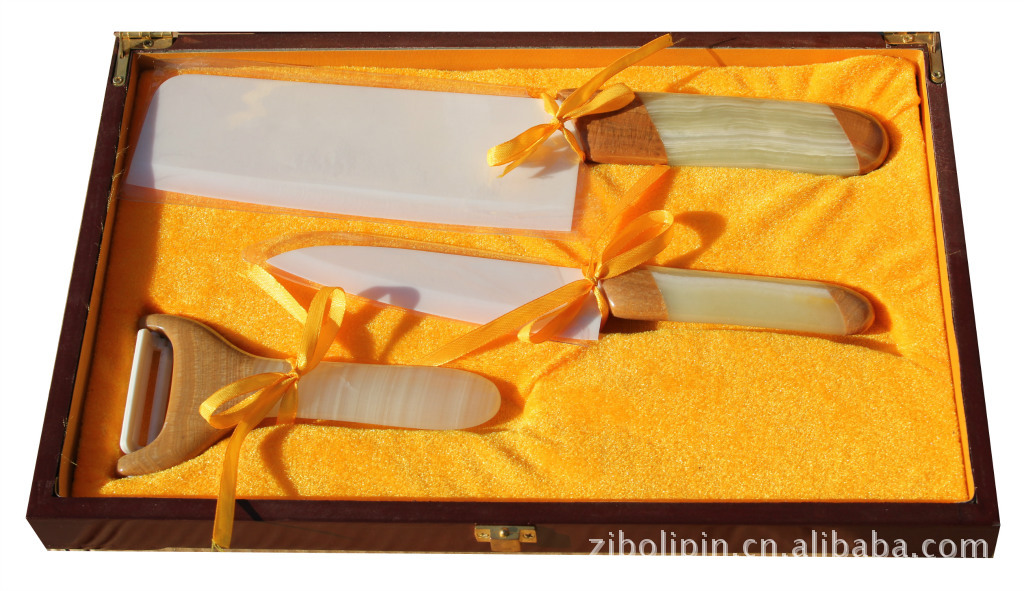 晶寶陶瓷刀擁有無可比擬的鋒利刀鋒,能削出如紙一樣薄的肉片。金生活陶瓷刀具有超強的硬度及耐磨性,根據材料硬度比較表顯示,它的硬度僅次于鉆石。據有關部門測試,精密陶瓷刀的耐磨性是普通菜刀的60倍,無須打磨,歷久如新。
