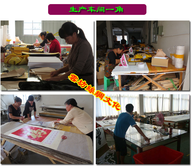 平陽縣云坊工藝品廠成立于二零零七年,座落于中國商務生產基地-平陽,是國內著名的專業性從事禮品、工藝品等開發生產基地,產品輻射全國各地。多年來我們以工藝嚴謹專業、服務誠摯周到、價格合理公道,深受各界人士所稱道,并取得了不俗的業績。主營業務:絲綢掛歷、金箔畫、織錦畫、絲綢掛畫、高端復制畫、百家姓掛畫、真絲掛畫、裝裱字畫、畫框配制、名人字畫、文房四寶、工藝折扇、石章篆刻、新老紅木畫框的定制、大型酒店、賓館的書畫定制、及單位的商務禮品等等... 展望未來,我們將不斷研發、生產精美禮品,提供給客戶選擇,同時熱誠歡迎各界人士及單位來樣,來圖訂做,我們將根據您的要求設計生產,為您提供優質的產品和完美的服務。 本企業以“質量、誠信”為體,恪守“銳意革新、精益求精”的企業宗旨,愿與廣大新老客戶真誠合作、攜手并進,共同打造美好明天!