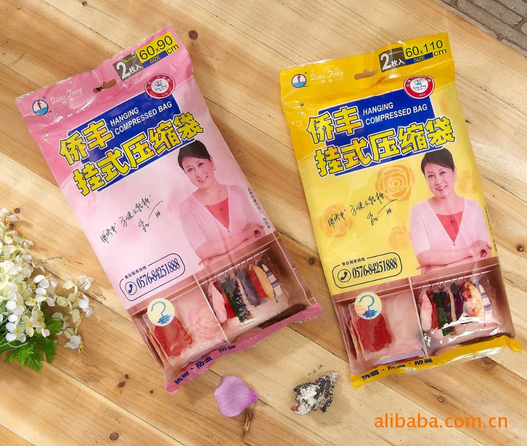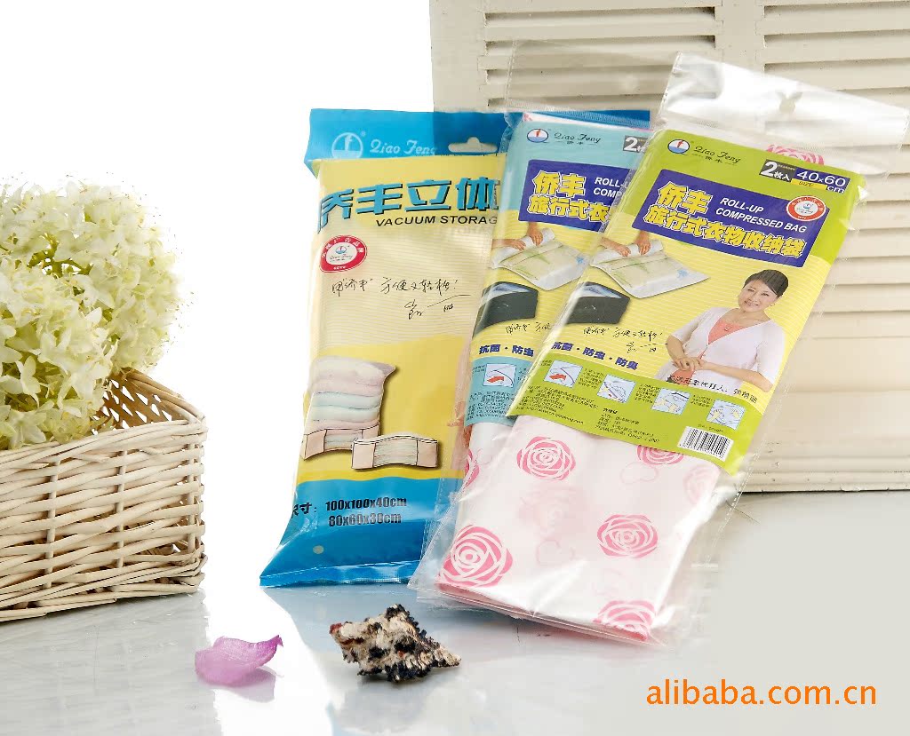 僑豐真空壓縮袋,9絲精品裝(也稱加厚版),高檔PE PA復合,可使用多年,無論在厚度上、柔韌性上、反復使用時間上,都是其他品牌的同類壓縮袋所無法比擬的。