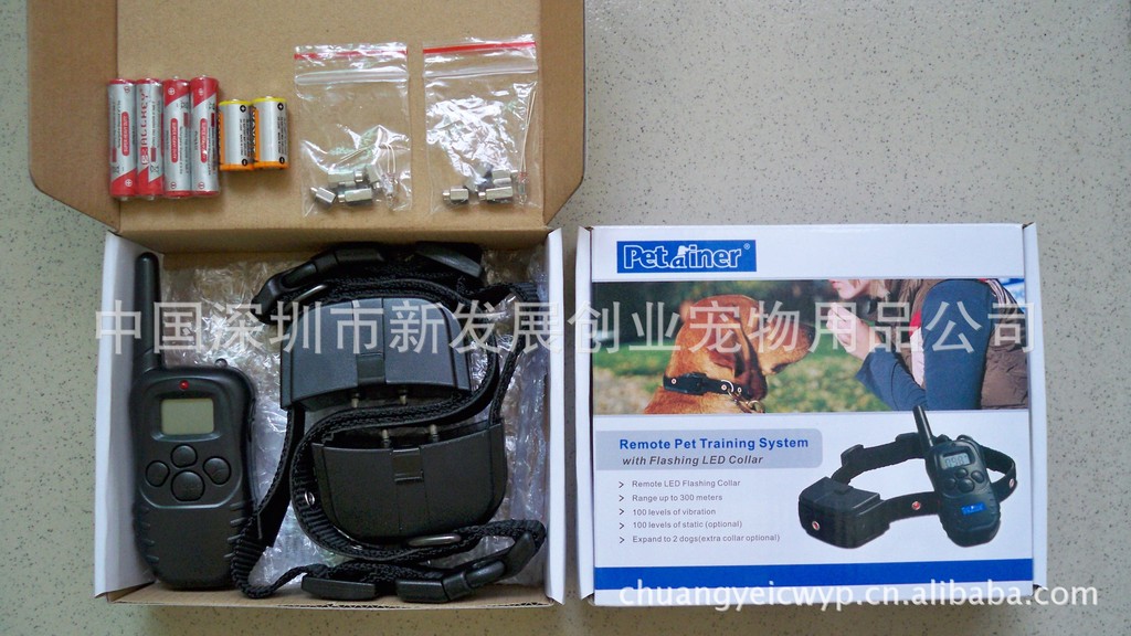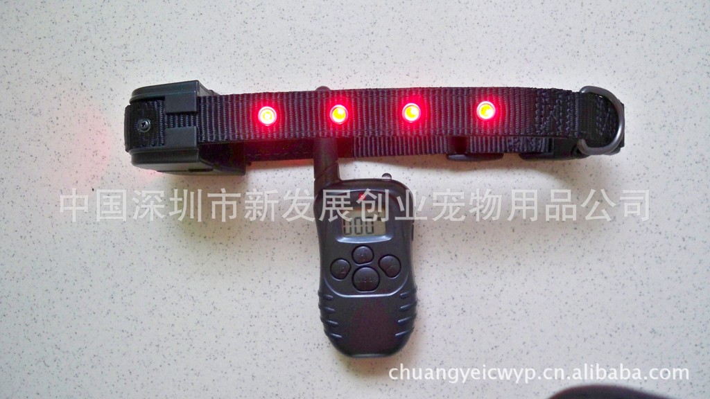 4.接收器帶省電功能,可以發出聲音和有閃燈功能,項圈帶子也會發光,有尋狗器功能.