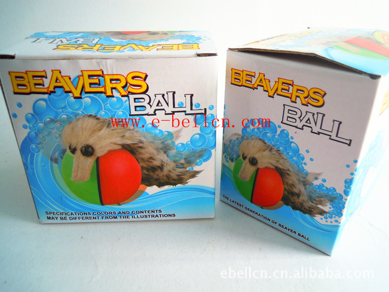 適合水里玩;材料:ABS;顏色:藍紅/綠紅;球尺寸:8*8cm,海貍尺寸:21*6cm,彩盒尺寸:11*8*10cm